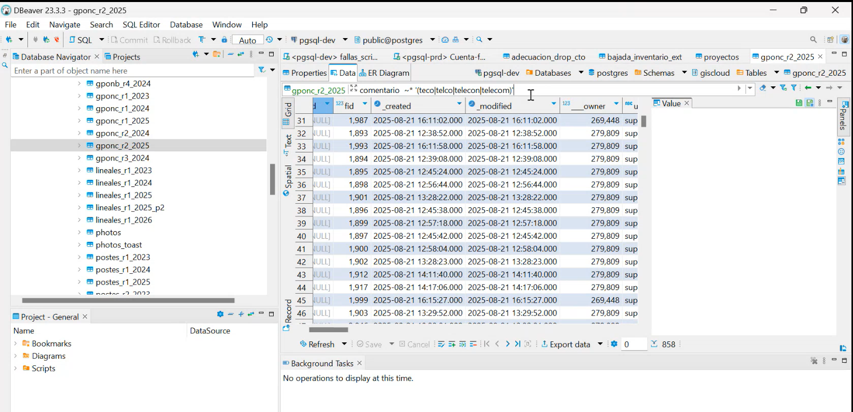 Ejemplo de cómo puedo ver los registros que cumplen la regex en DBeaver