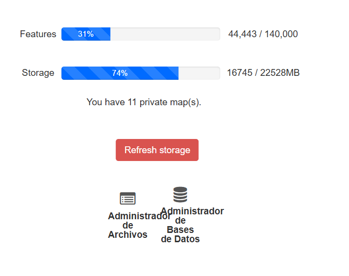 Verificación del storage disponible Giscloud