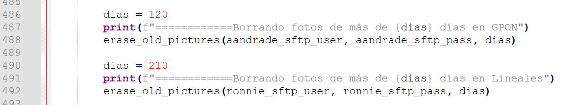 En el caso de que el storage esté por encima del 90% debe bajarse la cantidad de días de retención de los archivos en el script bajadaGiscloud-RF03122025.py (o más actual) y ajustar los días