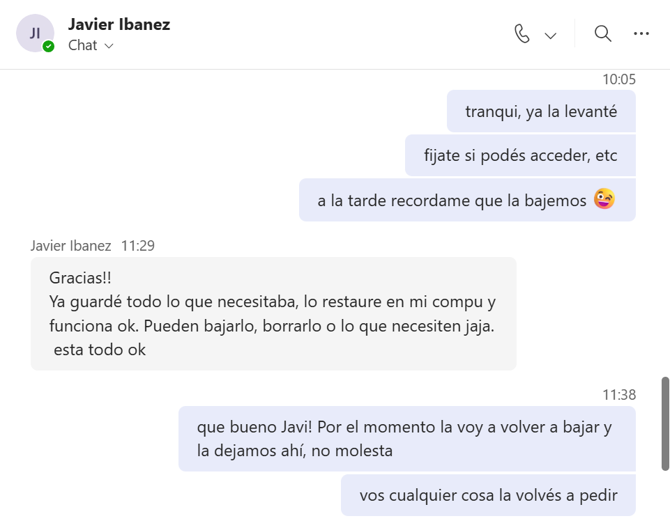 Se procedió al STOP de la VM ya que Javi nos indicó que finalizó las tareas con éxito.